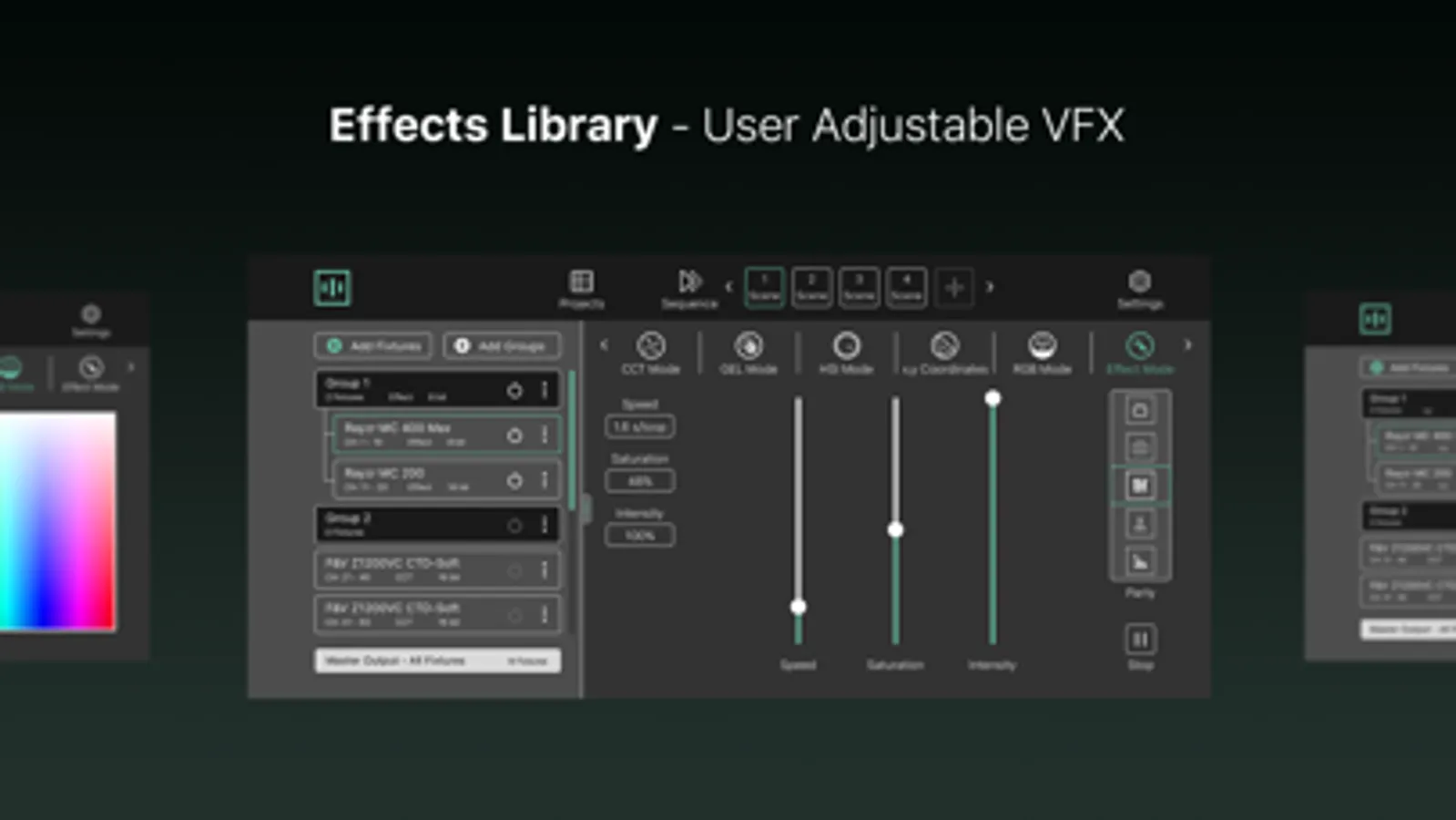 RTX Master allows you to control Art-Net compatible lighting fixtures from a variety of manufacturers like Rayzr, Vibesta and F&V through the RTX router or any other Art-Net compatible device.