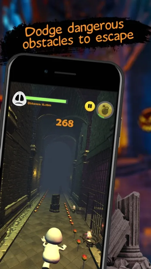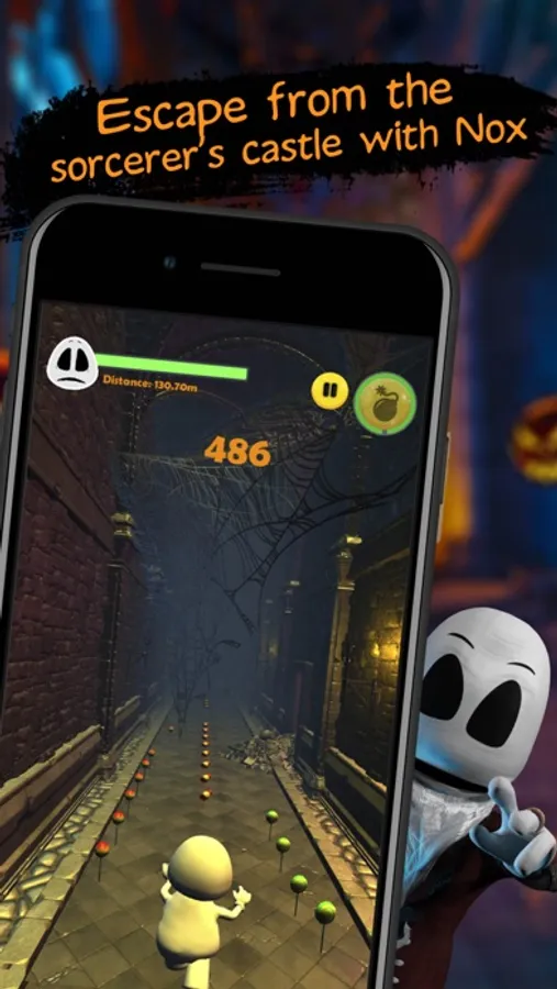 Help Nox escape by escaping through the corridors of the sorcerer's huge and sinister castle. Running through the corridors of the dungeon, through a trail of traps and also cute pictures of the sorcerer himself, who is watching you from the portraits on the walls.