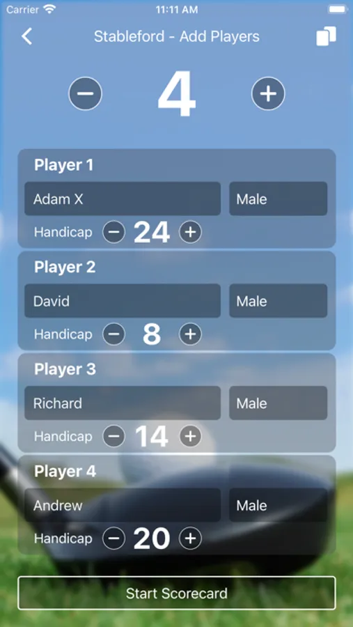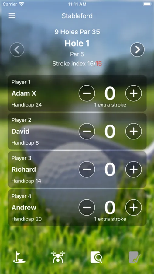 • In app Scorecards (up to 4 players!) to calculate Stroke, Stableford and Match Play