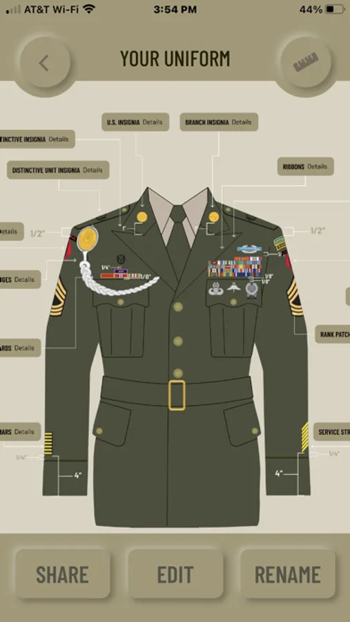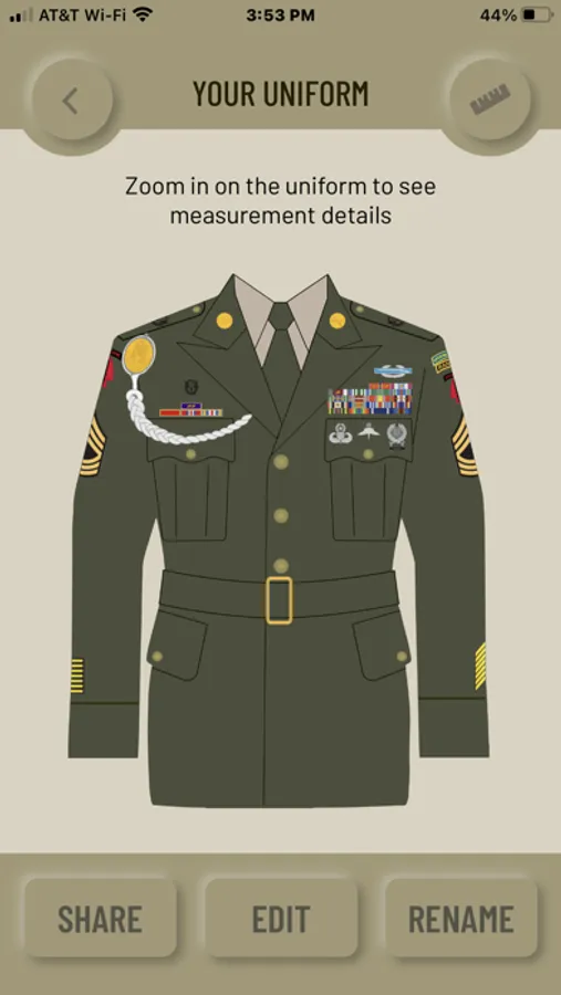 iUniform AGSU is the only app that builds your entire Army Green Service Uniform (AGSU) and shows all the measurements!