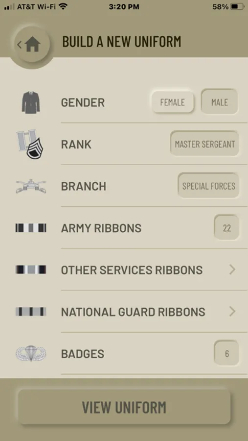 Square away your team, squad, or platoon. You can build, save, and share your soldiers' AGSUs faster than the time it normally takes to figure out one uniform using a booklet or manual! The iUniform AGSU app was created to make Army Green Service Uniform assembly fast!