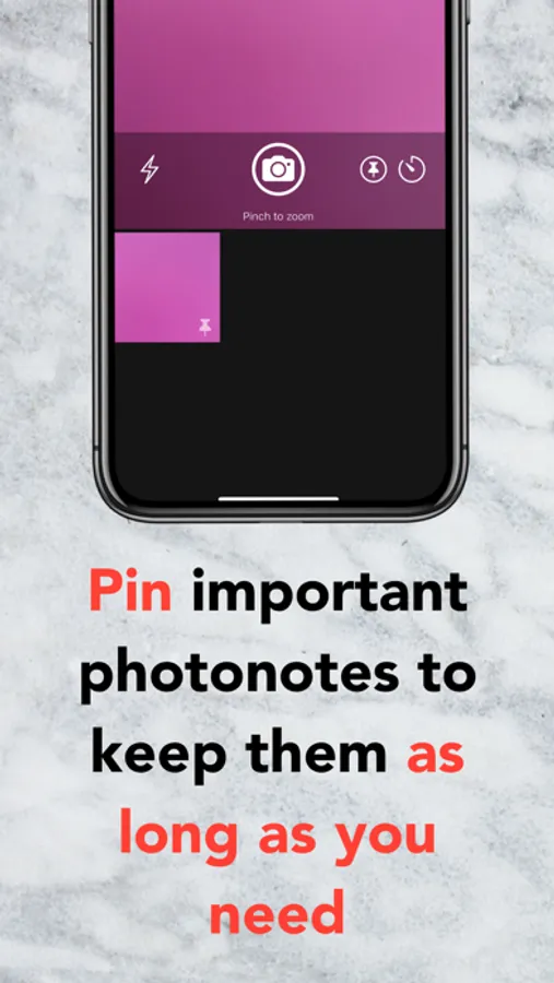 Photo Notes is an app which allows you to take photos and save them as notes, separate from your camera roll. When you take a photo note, you can select for how long to keep it - 1 day, 3 days, 1 week, or pin it and keep it forever. This is useful for photos that you want to take, but don’t want to take up space and clutter your camera roll, such as saving your hotel room number, the price tag of a grocery, or your car park spot number.