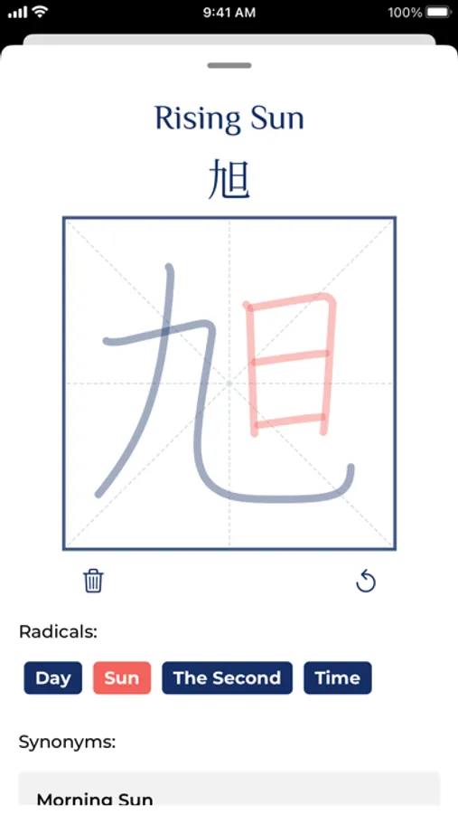 A kanji may be made up of other groups of kanji called radicals. Break the kanji into smaller parts and use the keywords and stories from these parts to help you make a story mnemonic.