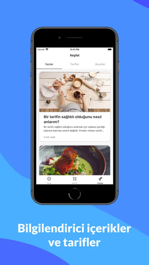 Özenle derlenmiş içerikler ile beslenme ve sağlık ile ilgili bilgini derinleştirerek yeni alışkanlıklar kazanabilirsin. Ne yiyeceğini bulamıyor musun? Derlediğimiz onlarca tarif arasından sağlıklı bir öğün seçebilirsin. Sağlayacağımız Health App ve diğer takip uygulamalarının entegrasyonu ile beslenme analizlerini daha detaylı görüntüleyebilirsin..