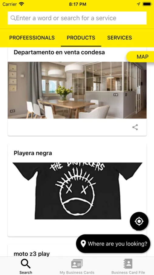 Sin disturbios, sin publicidad y con todo lo que hace falta para comunicarse. Un espacio donde cada uno podrá agregar los productos que desea vender, si usted oferta algún servicio también podrá agregarlo, podrá buscar el producto o servicio que necesite y se mostrará en un mapa para visualizar cual queda más cerca de ti. Todo dentro de la misma aplicación.