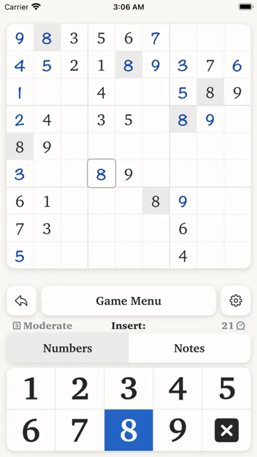 * Gameplay Options: Tap on a cell in the puzzle board to have Pro:Sudoku highlight other cells according to your options: You can change whether cells in the same column/row/group, or cells with the same number are highlighted. You can also set whether Pro:Sudoku should highlight mistakes or let you figure them out by yourself. You can also change the color used for numbers drawn in with Apple Pencil or placed with the on-screen controls.