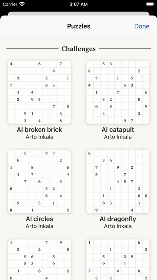 * Challenges: Puzzles created by the famous Finnish mathematician and Sudoku puzzle creator Arto Inkala are included with Pro:Sudoku, so you can test your puzzle solving skills against the hardest known puzzles.¹