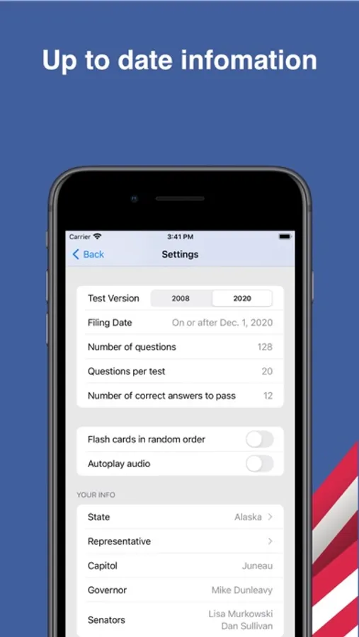 Supports both 2008 and 2020 versions of USCIS Citizenship test.
