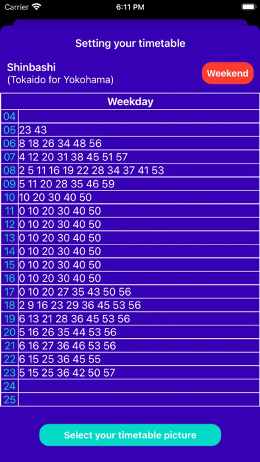 3-4) Tap "WEEKEND", and set up the timetable for weekend in the same way.