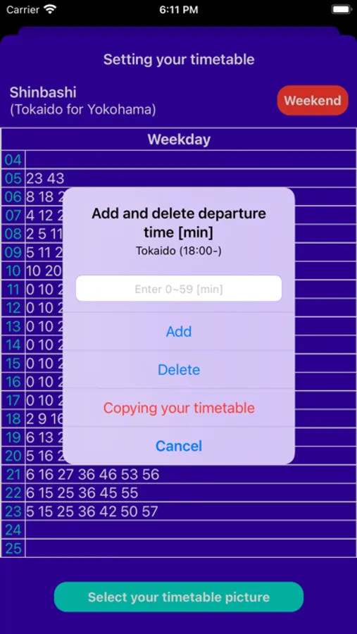 3-1) Tap the each entry field of time , and enter the departure minute and tap "Register". The departure time will be added to the entry field.