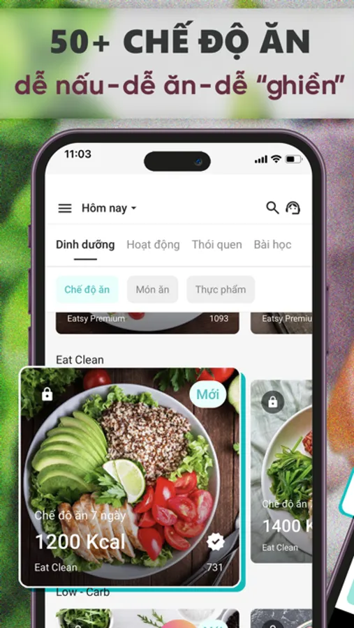 - 50+ thực đơn Eat Clean, Keto, Low-Carb, Vegan...vv.
