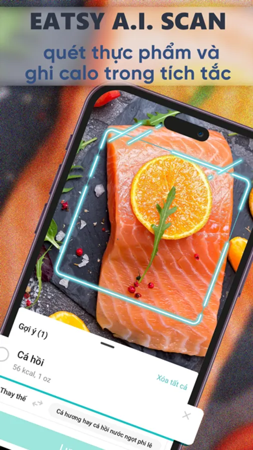 - Tra cứu calo thực phẩm trong tích-tắc bằng A.I. Scan (dùng trí tuệ nhân tạo để nhận diện thực phẩm qua camera điện thoại).