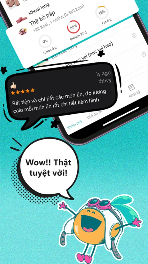 - Tính calo thông minh: theo dõi, đề xuất lượng calo ăn vào mỗi ngày dựa trên mục tiêu giảm cân của bạn.