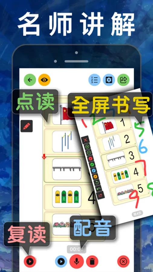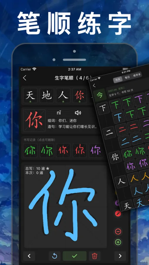 生字训练:手写板,拼音练习、笔顺笔画书写