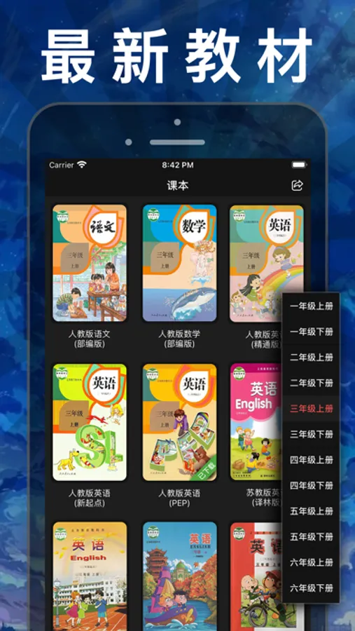 包含人教、湘少、北京、苏教、译林、外研等版本教材同步。