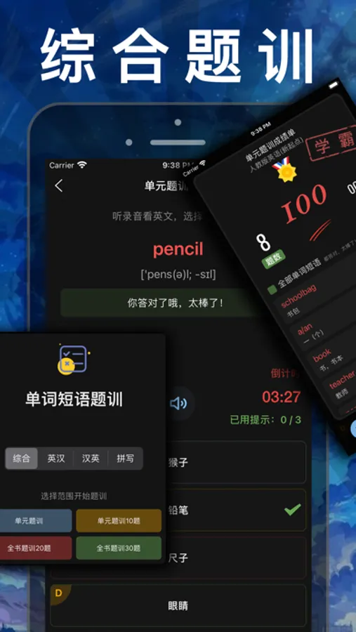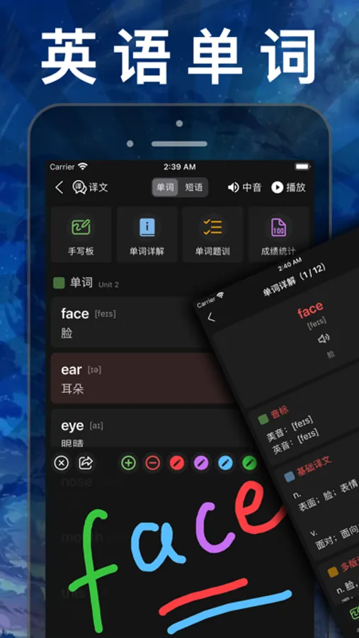 词语测验:记录学习单词短语,图标统计,让进步有个见证!