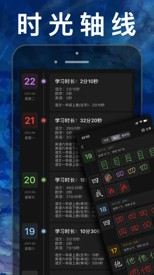 (学习成绩记录:课文学习、学习时长、单词学习、单词训练)