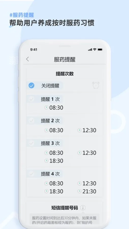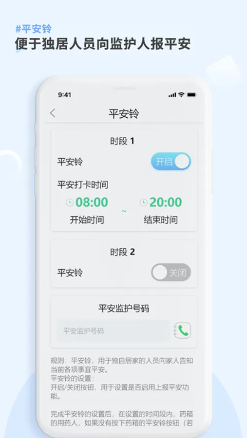 康言药箱极速版主要功能是自动提醒按时服药,为中老年人和糖尿病等慢性病患者设计,帮助用户形成按时服药的习惯,降低重复服药/忘记服药等风险。它还能将用户服药情况,平安铃,紧急呼救等信息传送至云端,以便监护人和签约医护人员了解并作出应对,随着大数据逐渐丰富将为地方医保和医护人员/连锁药店等第三方赋能,提高经济效益和从业人员的工作效率,多方携手实现以健康为中心的国家战略。