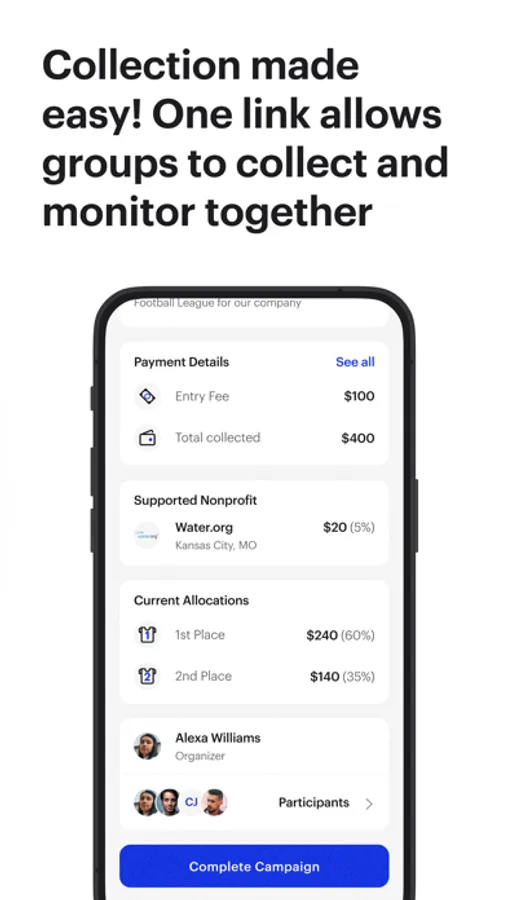 Playfora saves organizers hours of time and reduces their liability by automating the collection process. Now hosts can collect multiple payments, reallocate funds, reimburse expenses, and send donations to causes from one easy-to-use application.