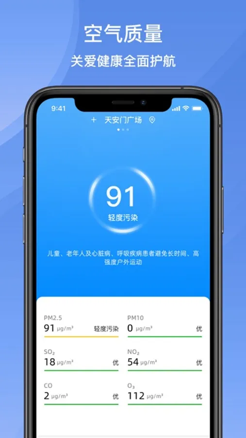 实时空气质量监测,关心天气,更关心您的健康生活。