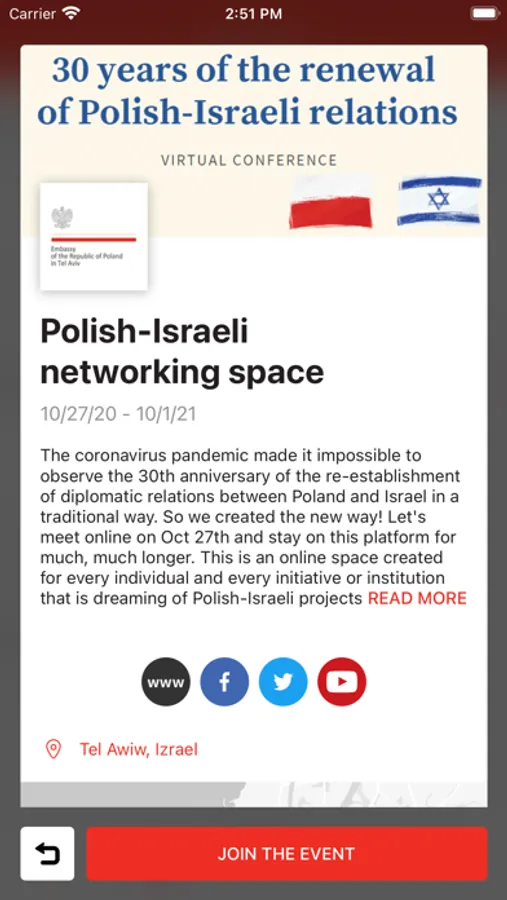 The current worldwide health situation made it impossible to observe the 30th anniversary of re-establishment of diplomatic relations between Poland and Israel in a traditional way. So we created the new way! Let's meet at the virtual conference on Oct 27th and stay on this platform for much, much longer. This is an online space created for every individual and every initiative or institution that is dreaming of Polish-Israeli projects and is looking for partners. You will find them here!