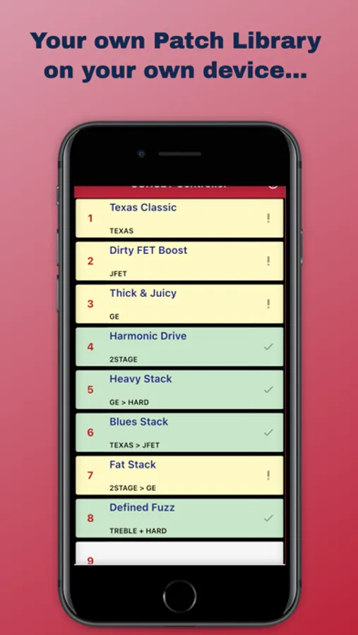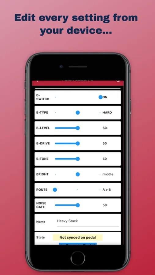 Edit all pedal settings from your device and save to a patch on your device building up your library. 127 patches on your phone can be saved to the pedal.