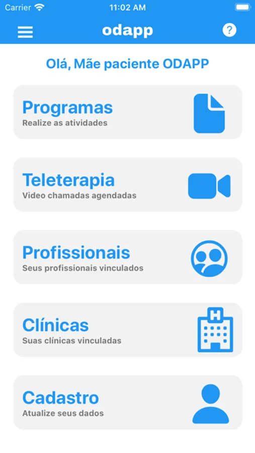 O aplicativo pode ser usado pela FAMÍLIA (cuidador + criança) para visualizar o desempenho do paciente enquanto faz as terapias dentro do consultório/clínica ou para receber treinamento e aplicar as terapias em casa com a supervisão de um profissional à distância.