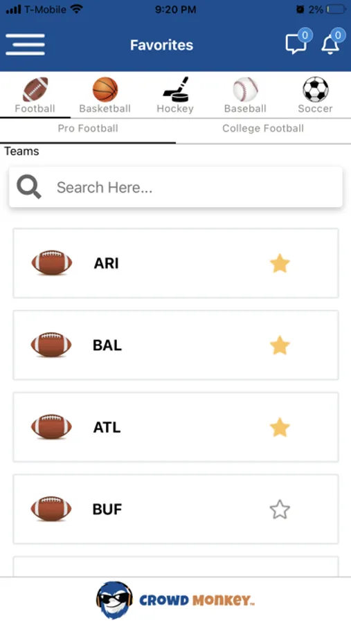 Further personalize your experience by choosing your favorite teams from each sport to receive notifications and reminders to upcoming events.
