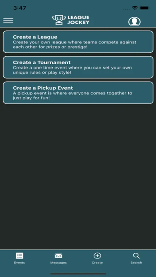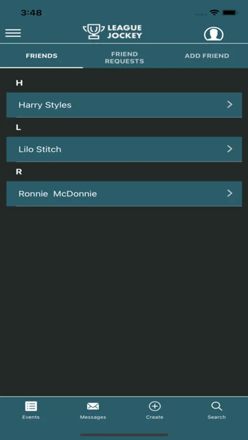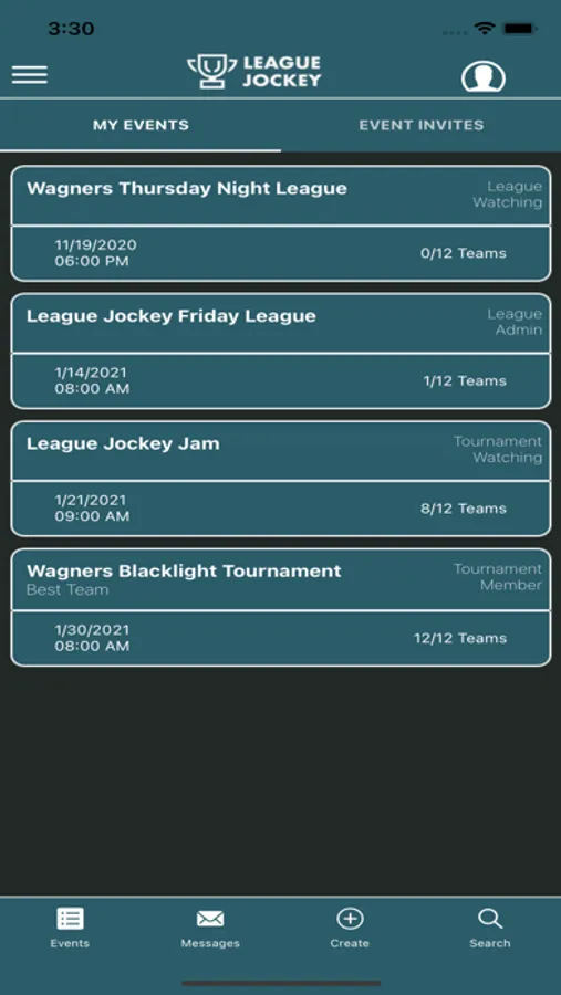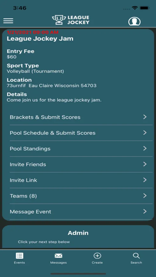 Let friends signup for your event or create unmanaged teams for friends who do not have the League Jockey app.