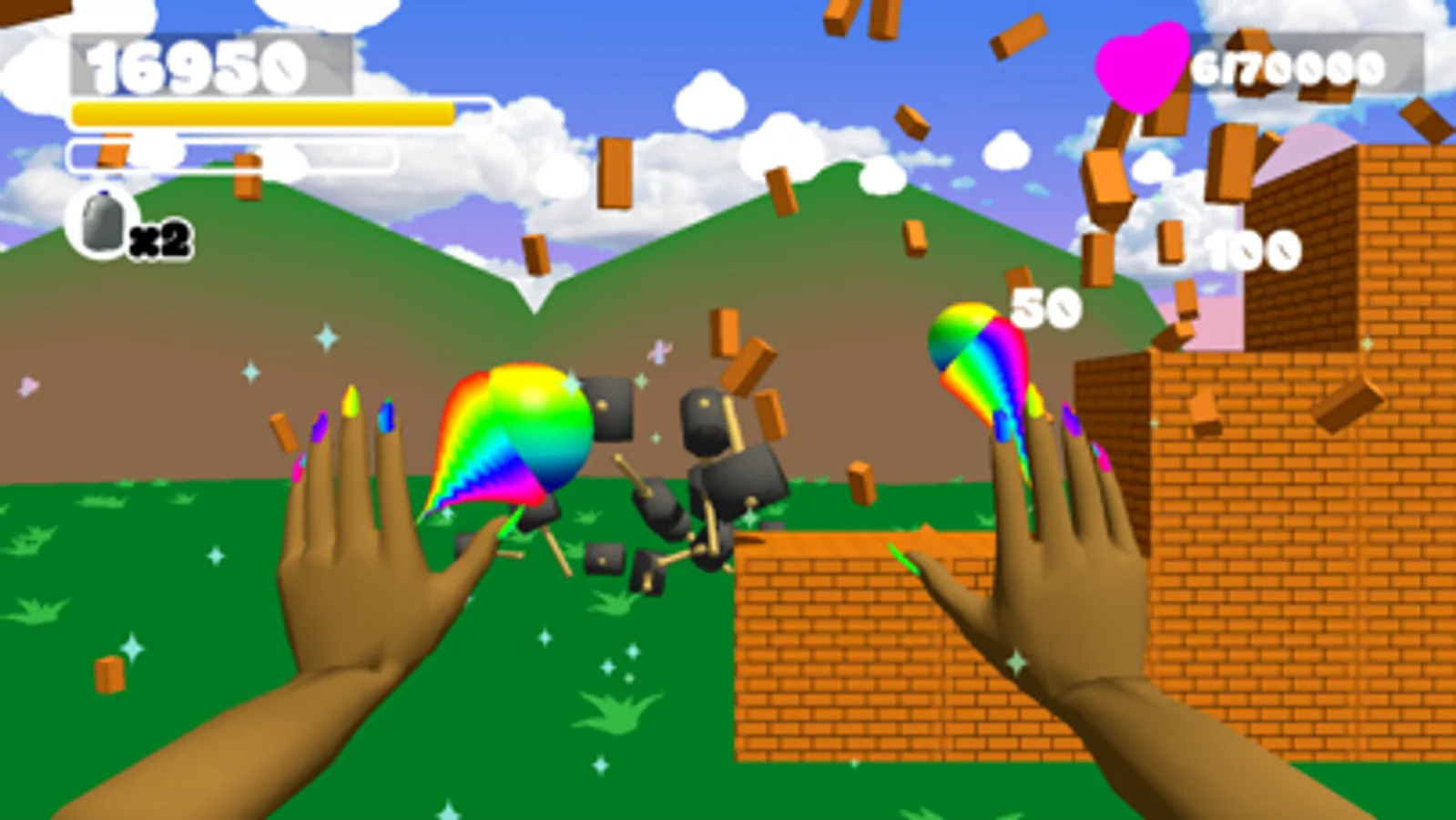Smashy Bashy is a game where you must smash a brick wall using your magic powers. Shoot energy balls, hammers, and more at the wall. Watch out for the boots trying to stomp on you! Can you free the hearts that have been locked up in a cage?