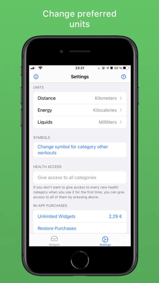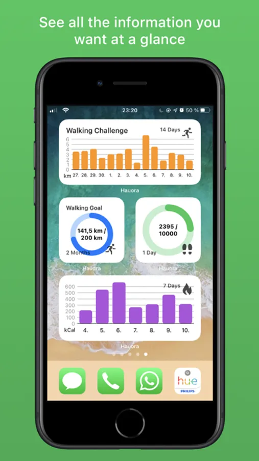 Hauora let's you keep track of your current health and fitness stats on your home screen. You can create and customize widgets to show exactly the information you want to see. The widgets can display data from the health and fitness apps. You can for example keep track of your steps that day or how much sugar you consumed last week. Hauora supports over 50 health categories!