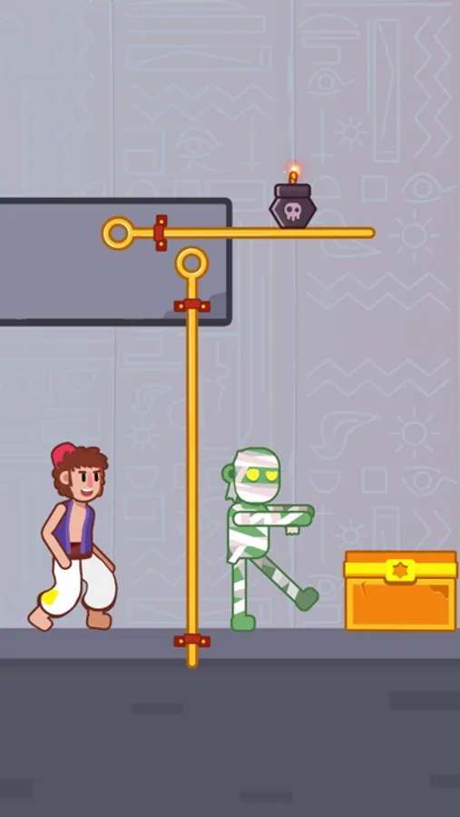 Deep in an ancient tomb, there were many treasures to loot. A'ladin is a skillful thief who wants to change his life by entering the tomb and collecting all these treasures. Unfortunately, no one has ever escaped the maze of the tomb successfully: tricky gates, pins, and mummies would come out to stop them from getting the rewards. A'ladin needs your help to solve those tricky puzzles and get all the gold from the tomb.