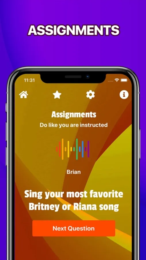 When you are drinking with your friends you can startup the game and each player will take a turn to do an assignment or answer one of the questions. You can configure the game and choose to play the following cards: