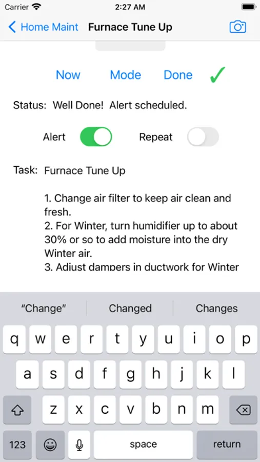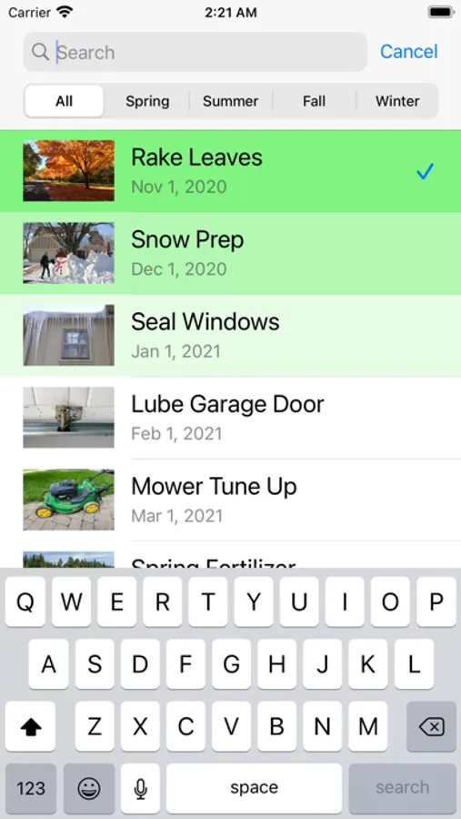 Home Maint helps home maintenance get done instead of falling through the cracks. Each season has tasks to do, such as: