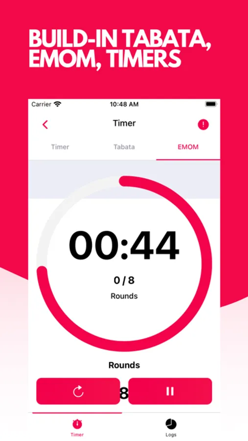 Tabata - The "Tabata" style of interval workouts or HIIT combines WORK and REST intervals. You can set your own time schedule, as well as the total rounds that you would like to complete.