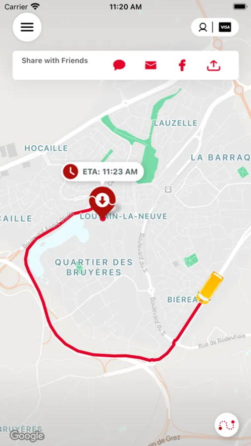You can follow in real time the arrival of the vehicle that will pick you up and drop you off while limiting the walking distance to a few hundred meters around the departure and arrival addresses indicated when you place your reservation.