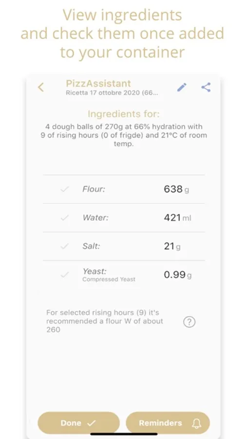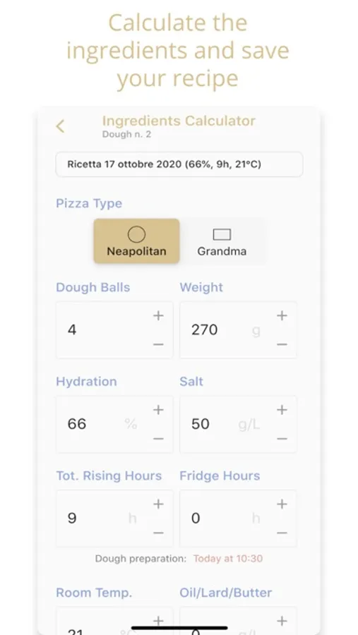 You can calculate ingredients, save your custom pizza/bread recipe and re-use it whenever you want!