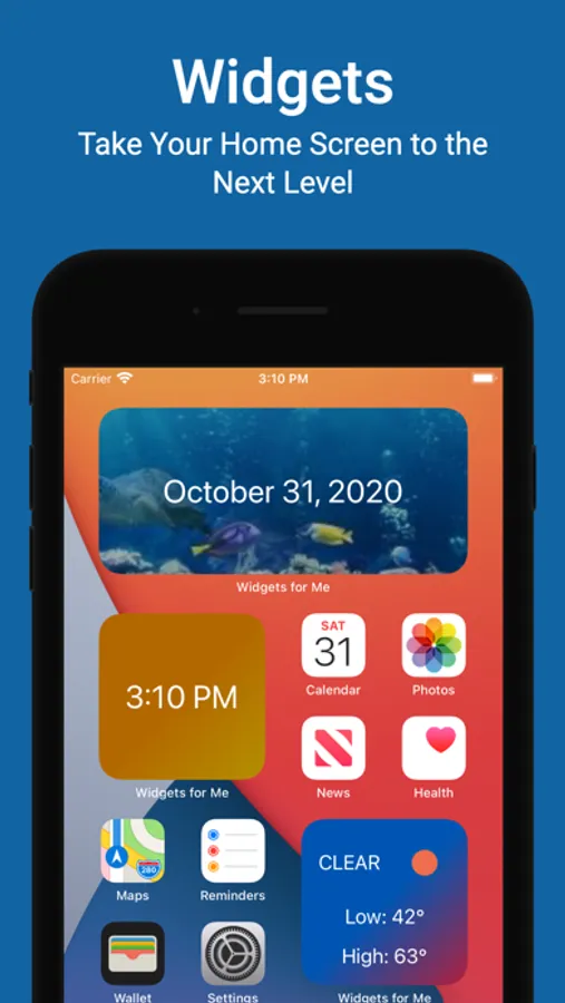 Widgets for Me lets you add custom & personalized Widgets right to your Home Screen! Stand out from the rest with one of the pre-made designs or even make your own.