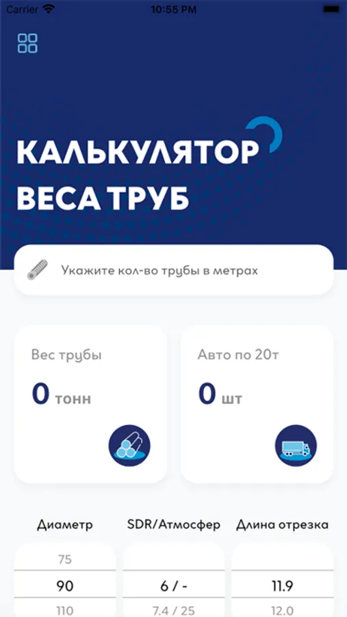 Приложение рассчитывает за считанные секунды количество полиэтиленовых труб, вмещаемых в грузовую машину объемом - 82 кубических метра и грузоподъемностью - 20 тонн. Теперь не придется искать каждый раз в интернете таблицу с параметрами труб, ведь простое и удобное решение уже у под рукой.
