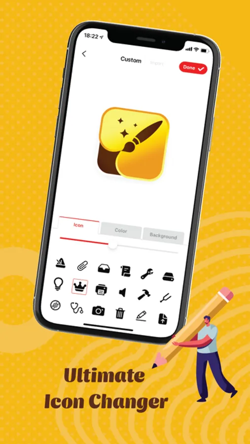 Choose from over 100 icons as well as upload your own photos to change app icon, Icon Changer gives you the most convenient tool to beautify your home screen. This app also allows you to customize icon with a wide range of color either solid or gradient for a higher personalization.