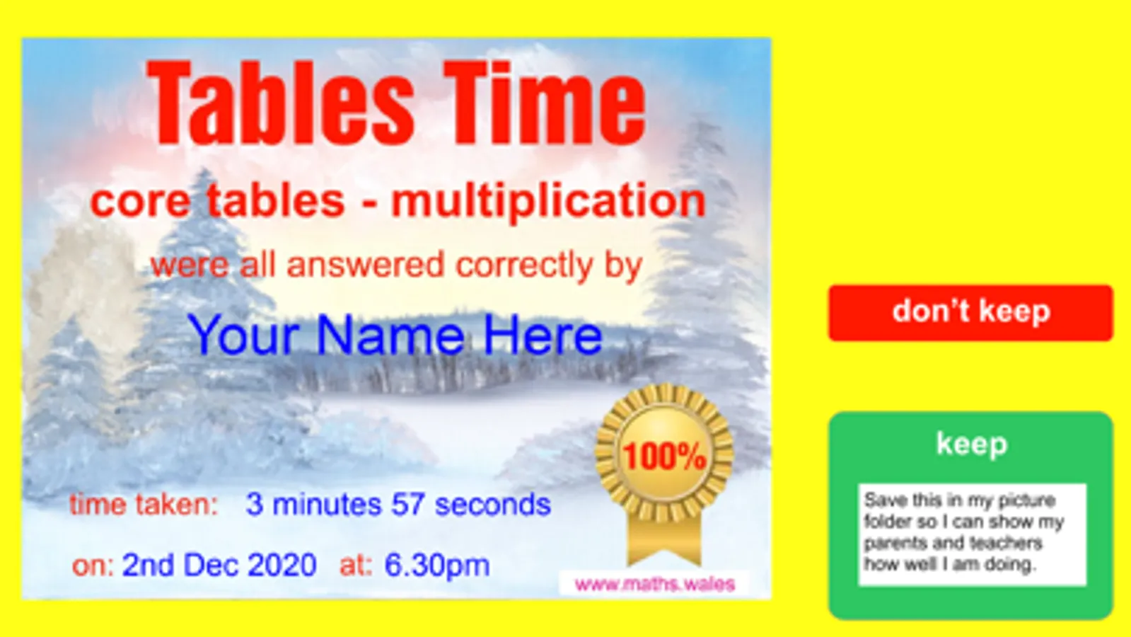 For free, 'Tables Time' allows you to practice your core tables - those all-important ones from 2 x 2 through to 9 x 9. You get the opportunity to track your progress with jpeg certificates.