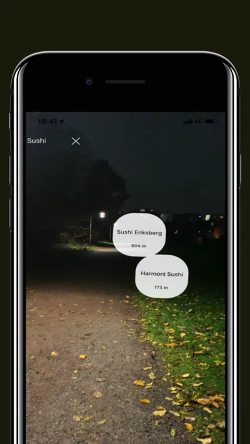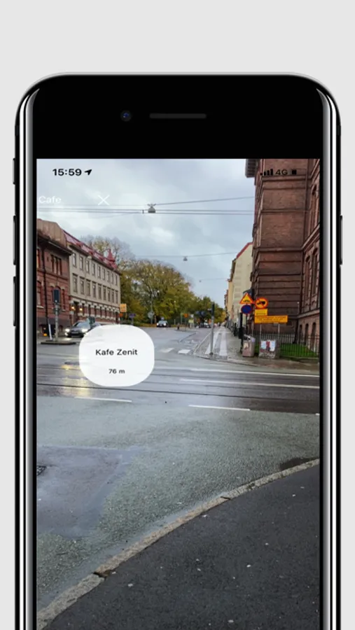 Search and let bubbles position themselves in the actual looking direction to the places. Explore with your camera. Get a quick and intuitive sense of where things are. By looking forward you can see suitable places to go ahead. Always see a live update on the bubbles of how far it is.