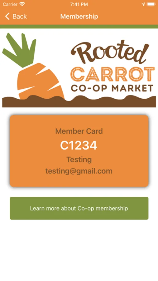 - Never lose your Rooted Carrot Co-Op Membership card with our paperless card stored on the app.