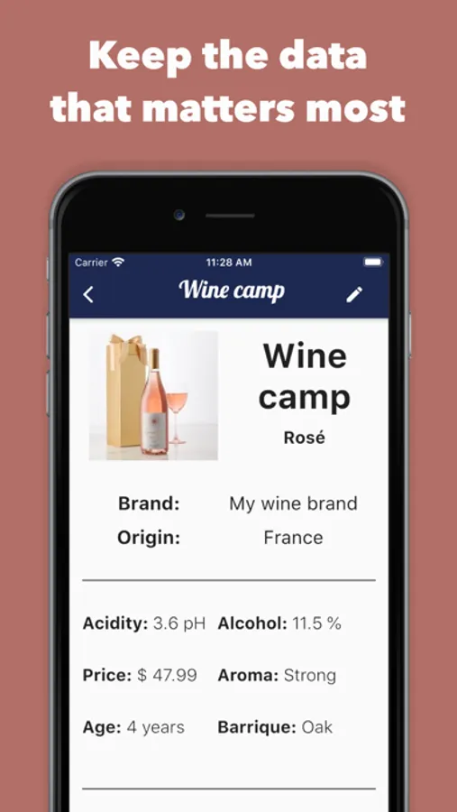 Sommelier is the perfect tool for wine tasting. Keep all of your information safe and organized, ready for when you need it.
