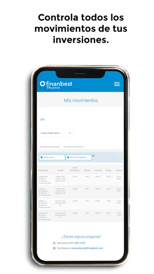 Con nuestra App podrás gestionar de forma sencilla y segura tus inversiones con Finanbest.