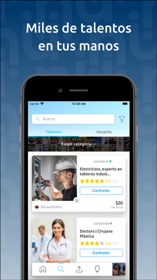 Usuario sin Talento: Kuentro es versátil y si aún no quieres crear un talento, puedes contratar y seguir a otros usuarios