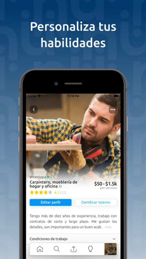 Añade tus habilidades y muéstrale al mundo lo talentoso que eres. Empieza a buscar trabajo local o internacionalmente. ¿Aún no tienes habilidades? No hay problema, crea tu perfil y busca a personas con talentos.