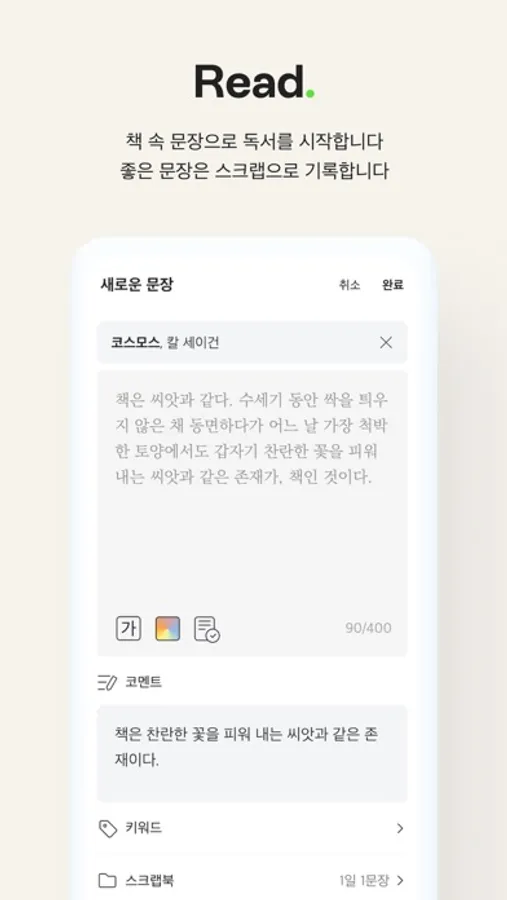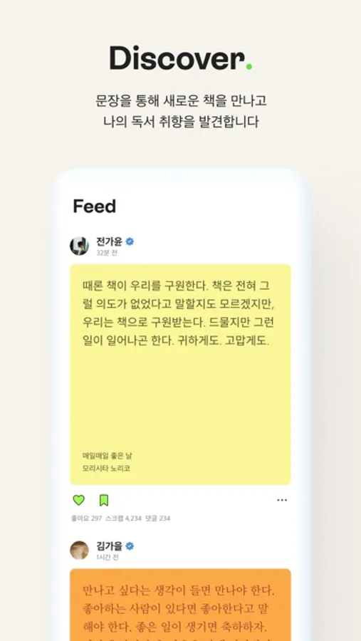 문장 피드를 탐색하며 새로운 문장과 책을 발견합니다.