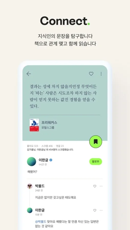 연관 문장을 파도 타며 취향이 비슷한 텍스터와 관계 맺고,