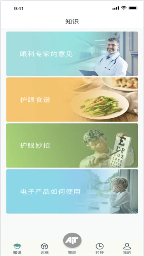 APP内容版块帮助用户学习如何科学护眼,AIT硬件与APP结合功能帮助用户缓解儿童近视。关注儿童视力健康的好帮手。
